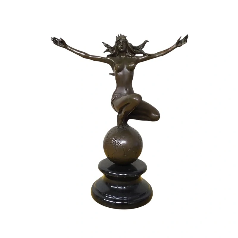 Elegantní vintage bronzová socha Bohyně Země – okouzlující tanečnice symbolizující Matku