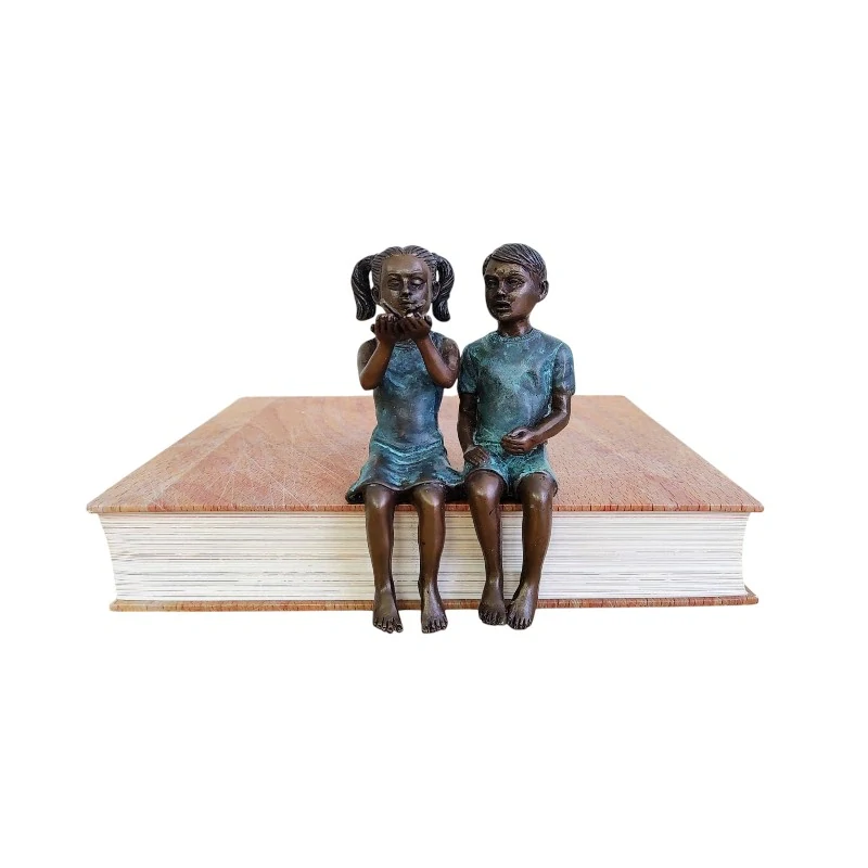 Bronzová soška dívky a chlapce na okraji – romantická ručně vyrobená dekorace