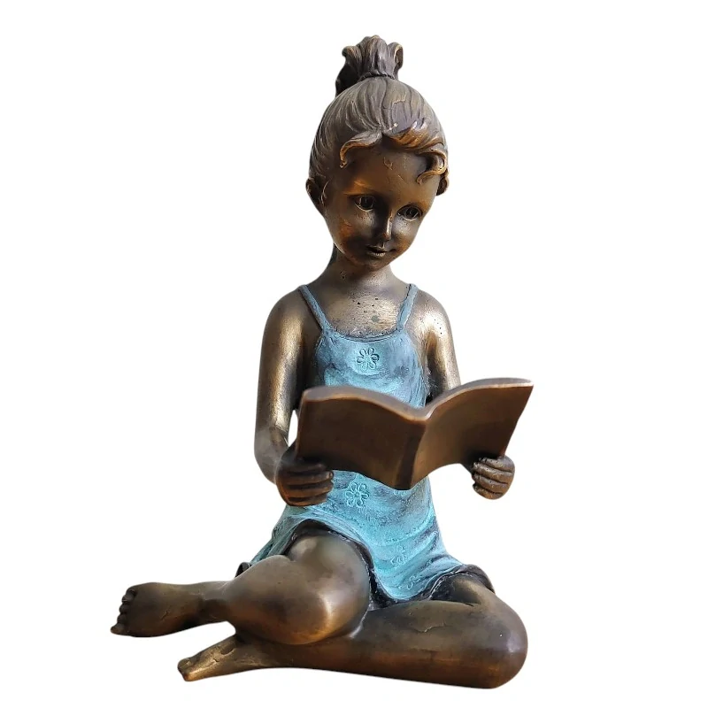 Roztomilá bronzová soška dívky ponořené do čtení, která okamžitě vytvoří klidnou a útulnou atmosféru.
