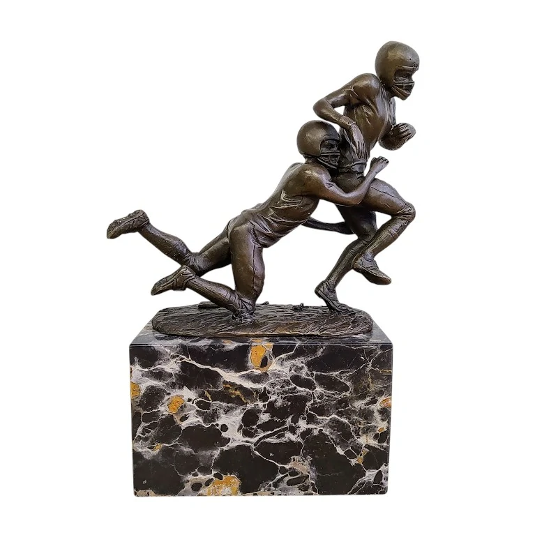 Tato elegantní bronzová socha zachycuje dva hráče amerického fotbalu v