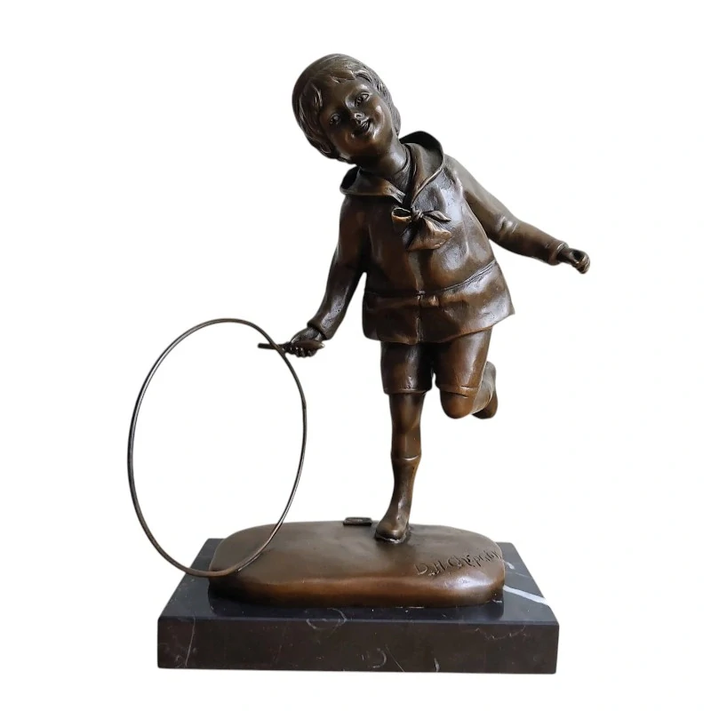 - Chlapec s obručí – bronzová socha, ručně vyrobená umělecká dekorace do interiéru