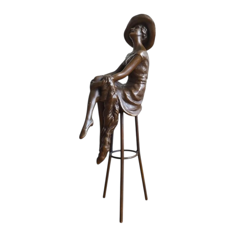 - Dáma na stoličce – bronzová soška, ručně vyrobená elegantní umělecká dekorace