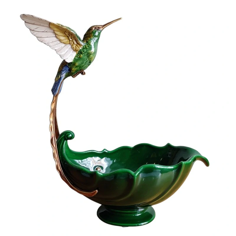Dekorativní porcelánová mísa s kolibříkem – zelená luxusní mísa s bronzovým detailemSkladem 1 ks5 690 Kč/ ks4 702 Kč bez DPH