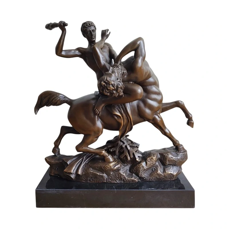 Exkluzivní bronzová socha zobrazující dramatickou mytologickou scénu boje kentaura,