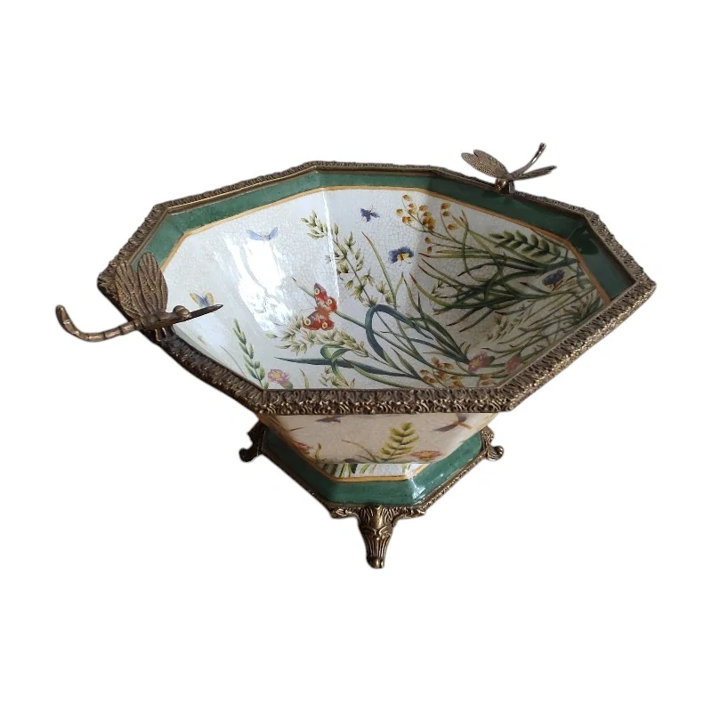 Luxusní porcelánová mísa s bronzovými vážkami – Art Nouveau styl, květinový motiv, dekorativní středový prvekSkladem 1 ks4 990 Kč/ ks4 124 Kč bez DPH