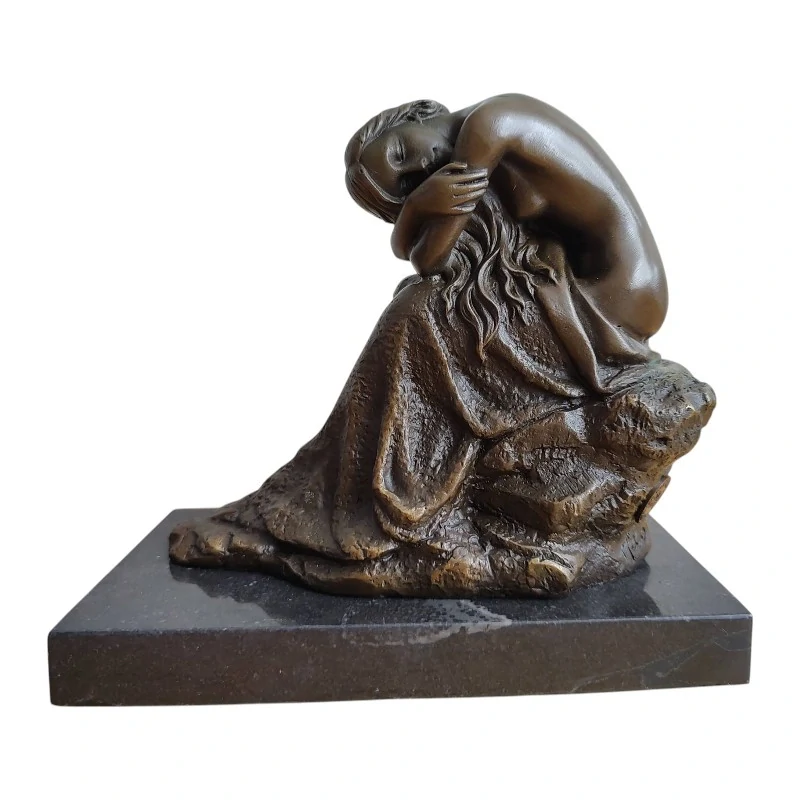 - Spící žena – bronzová socha na mramorovém podstavci – elegantní dekorace do interiéru