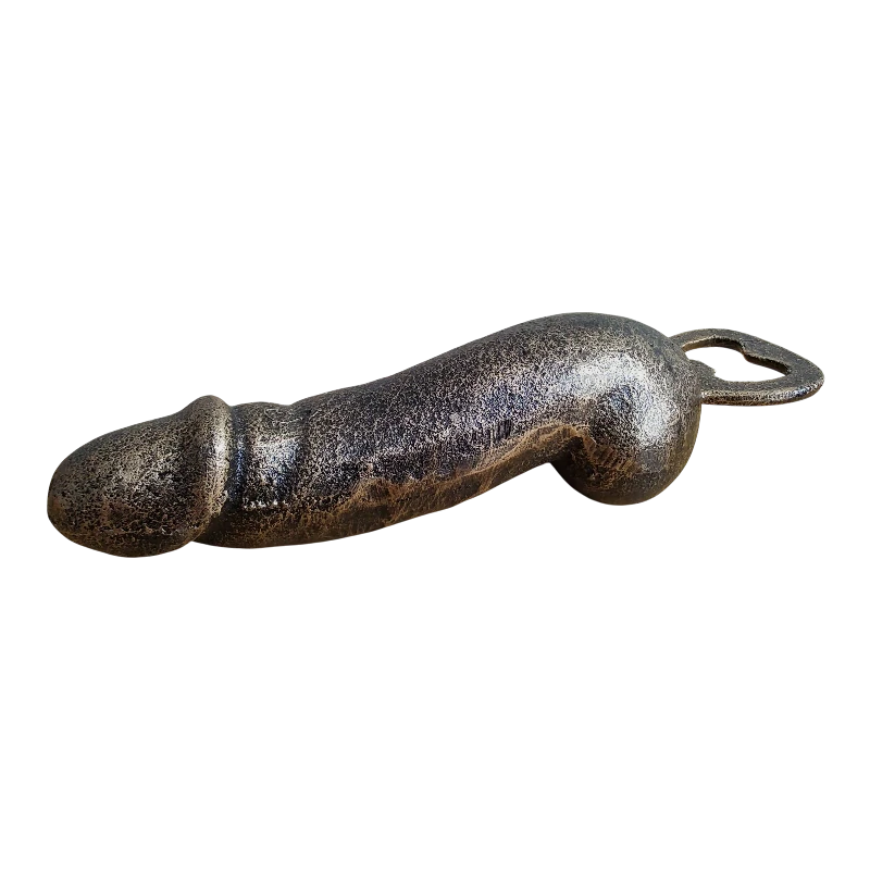 Otvírák na láhve ve tvaru penisu, vyrobený z litiny.