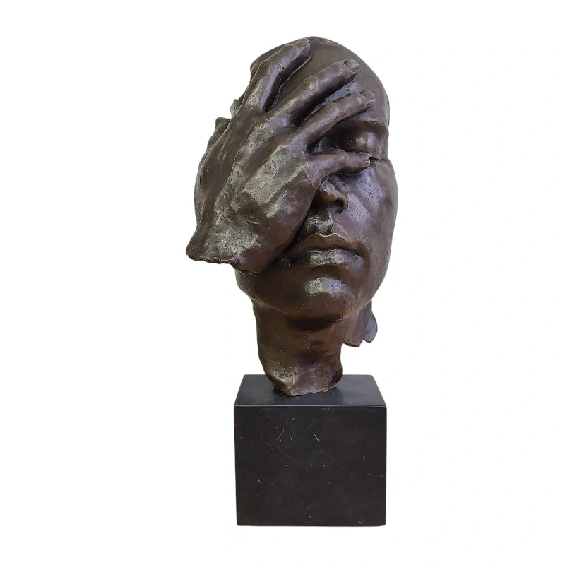 Tato výjimečná bronzová socha lidské hlavy představuje silné umělecké vyjádření emocí,