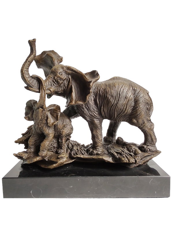 Nádherná a impozantní socha dvou slonů. Pečlivé řemeslné zpracování a důraz na detail