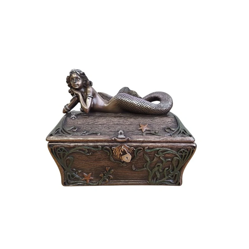 Krásná dekorativní krabička s víkem zdobeným klidnou mořskou pannou a detailními motivy