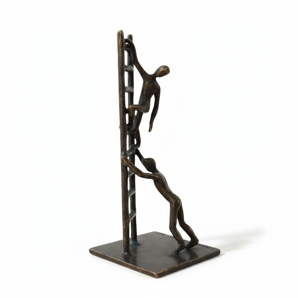 - Společně na vrcholu – bronzová soška, symbol spolupráce a úspěchu, umělecká dekorace