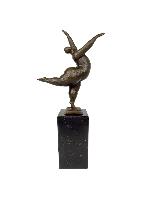 Tato moderní socha zobrazuje modernistický obraz velmi kulaté akrobatické tanečnice.